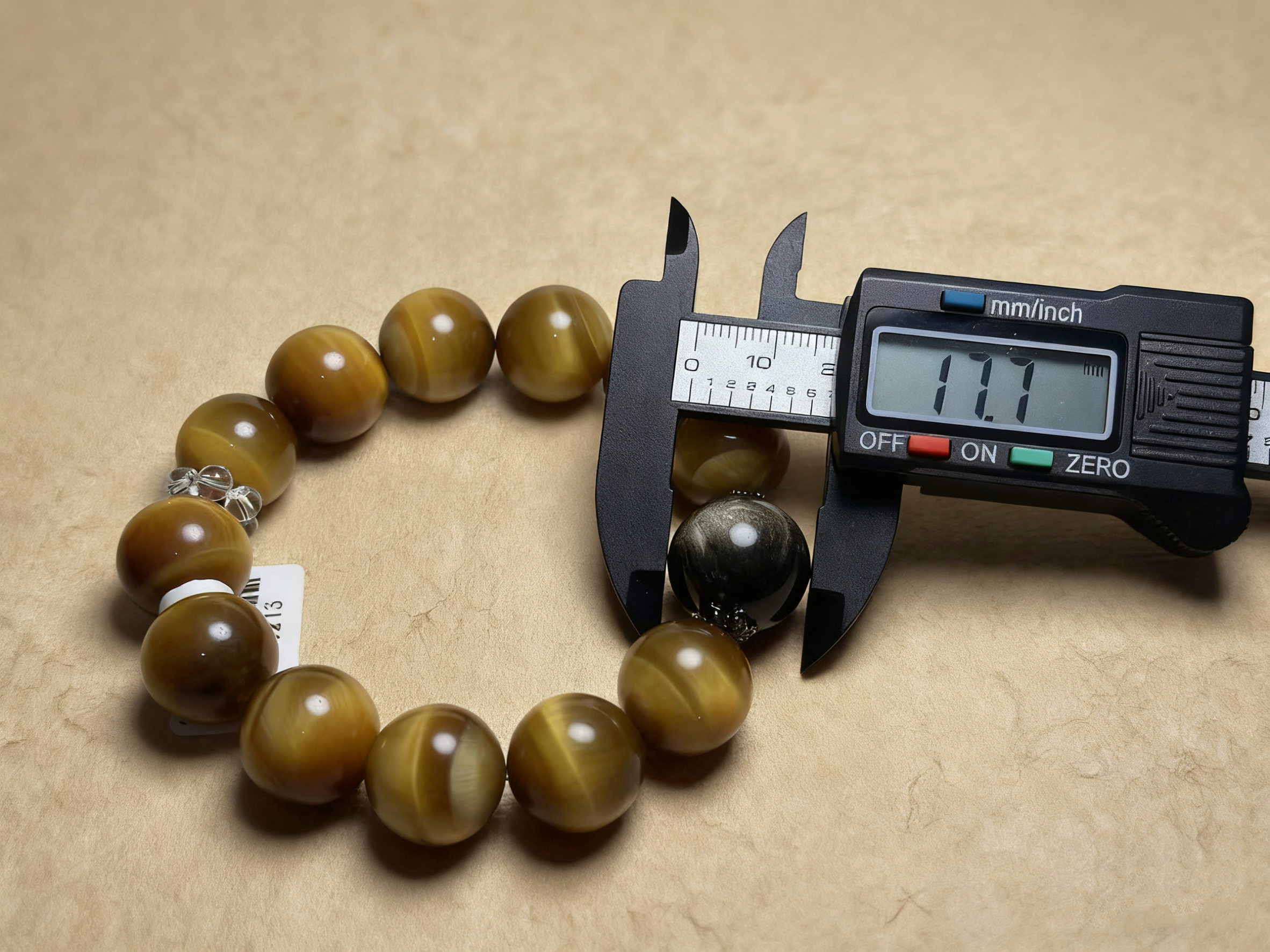 A/B: Golden Tiger’s Eye is often associated with courage and personal power. When you wear this bracelet, let its substantial presence be a physical cue to tap into your own inner confidence, helping you to act decisively and lead with authority.